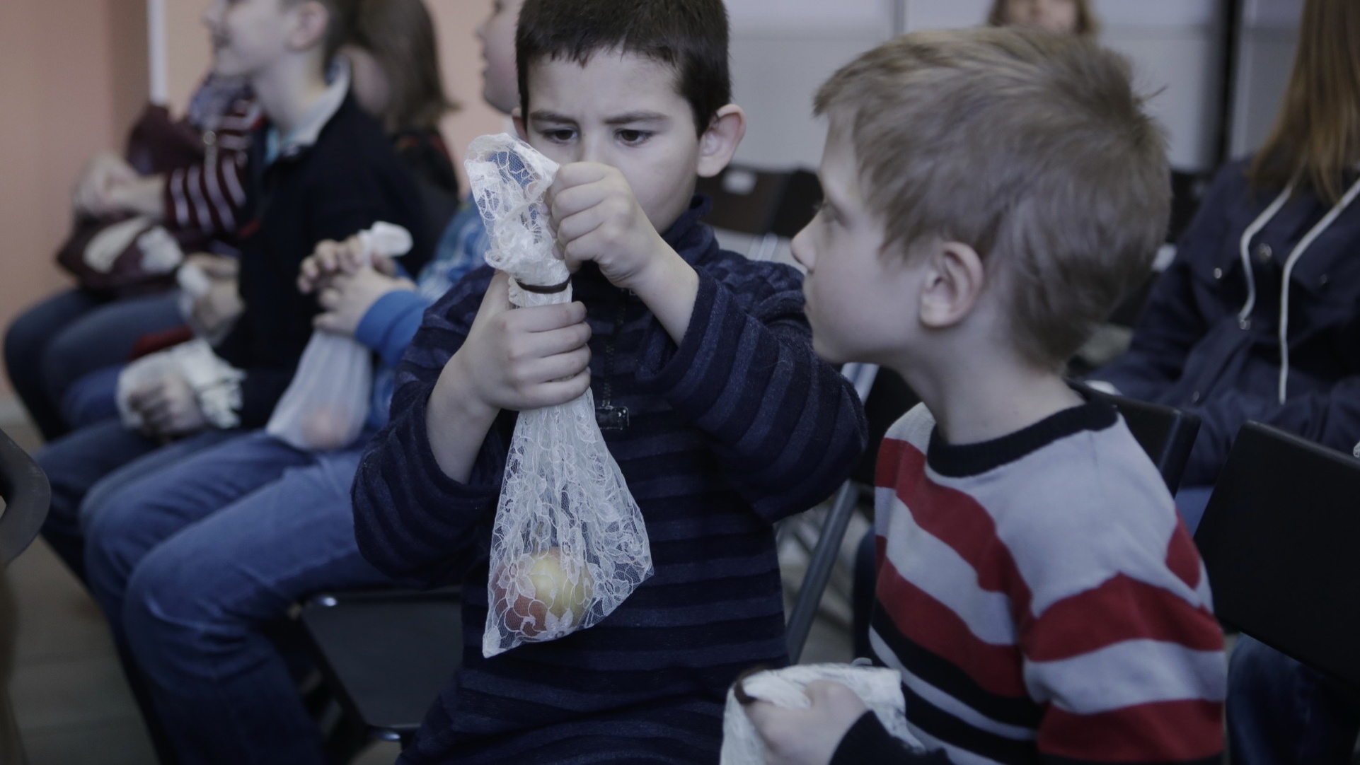 В заключение занятия каждому ребенку девушки подарили по такому мешочку — вместе с грушей или мандарином. И обещали рассказать о других экопривычках, которые позволят сделать мир чуточку лучше.