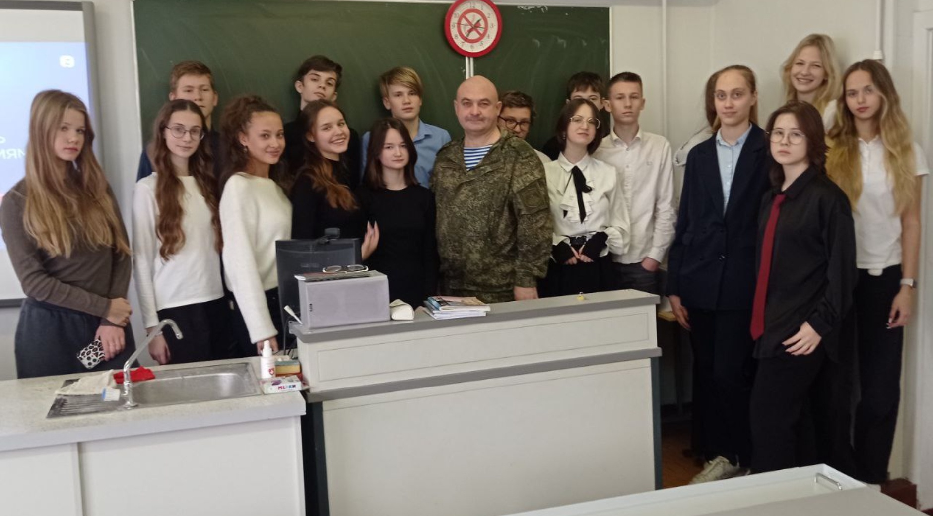 Сначала Валерий Хруцкий рассказал школьникам о своей военной специальности – опасной, но интересной работе старшего разведчика-снайпера. Сейчас военный проходит восстановление после третьего ранения. Но даже это время он расходует с пользой. В должности старшины РВПП (рота вновь прибывшего пополнения, - прим.авт.) он обучает новобранцев-срочников всем тонкостям профессии, которые в нужную минуту могут спасти ребятам жизнь. На его счету уже три выпуска, и бойцы, только вернувшись с передовой, всегда спешат пожать своим наставникам руку. И, конечно, старшина непременно учит всех, как Родину любить. Между прочим – душевно.