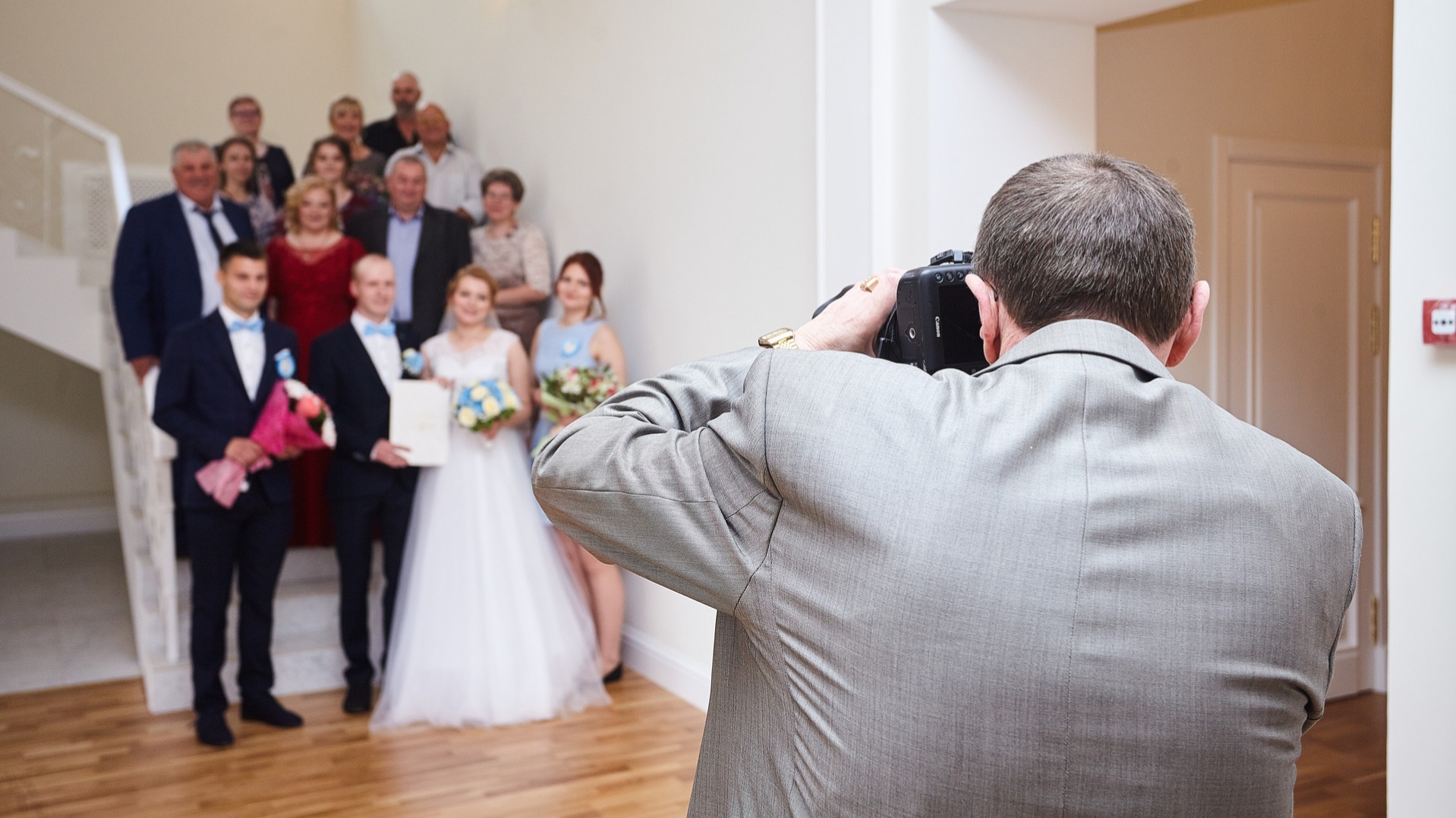 Великолепные впечатления от обновленных помещений Дворца бракосочетания и у свадебного фотографа. — Очень красиво! Для фотографа это идеальный вариант. Здесь чистый, практически белый потолок, светлые стены. Все очень выигрышно, — отметил фотограф Алексей Никифоров, снимавший первую свадьбу.