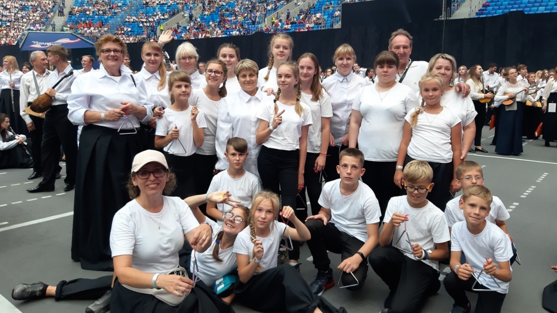 — Нас одели в оркестрантскую одежду, — вспоминает Юлия. — Выдали треугольники. И оказались мы в самом эпицентре событий, рядом со сценой. С одной стороны от нас — коллектив из Самары, с другой — из Якутии. Получилось, что мы не только пели, но и играли. Впечатления невероятные. А уж когда все разом запели, то мурашки побежали по коже. Они так до самого конца выступления нас и не покидали.