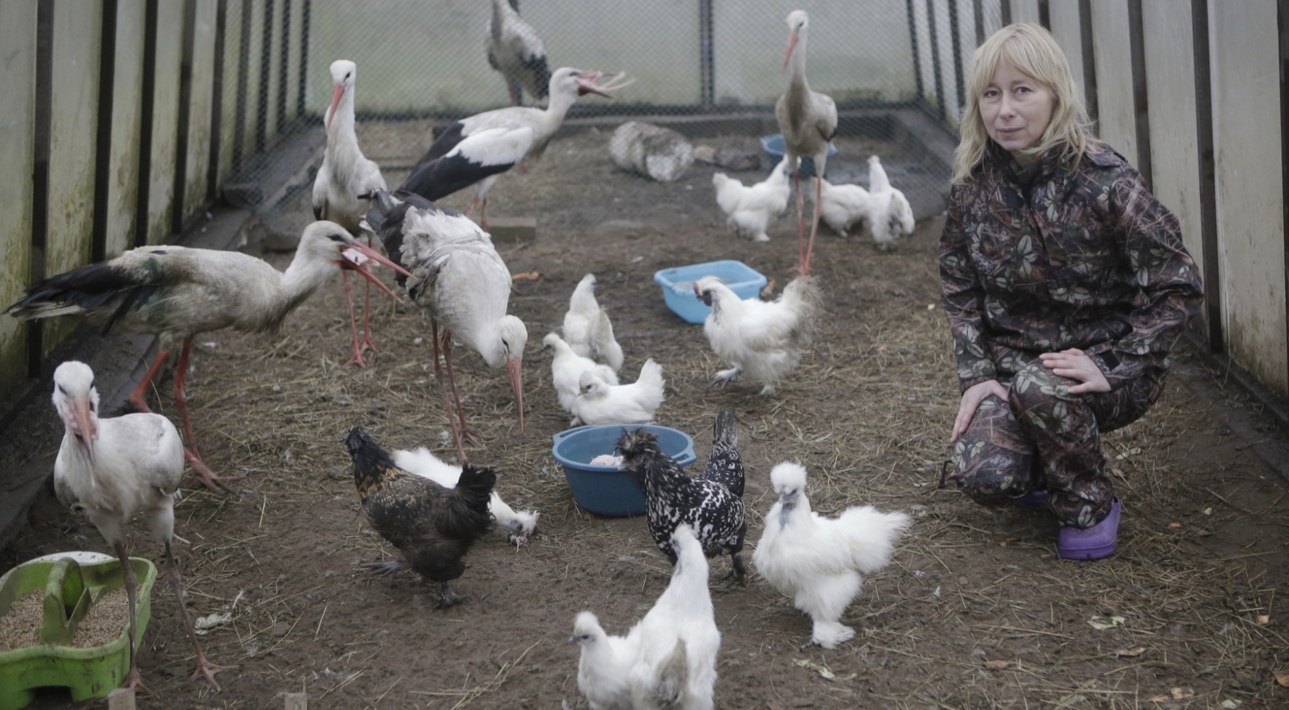 Когда мы были у Марины Сиденко в прошлом году, на ее попечении было пятнадцать аистов. Сейчас Марина заботится уже о тридцати восьми птицах! Она признается, что весь год было очень много работы. В теплом доме все аисты давно не помещаются, и к нему пришлось сделать пристройку.На реабилитацию к Марине аистов привозят не только из Псковской, но и из соседних областей — Тверской, Смоленской и даже из Подмосковья.