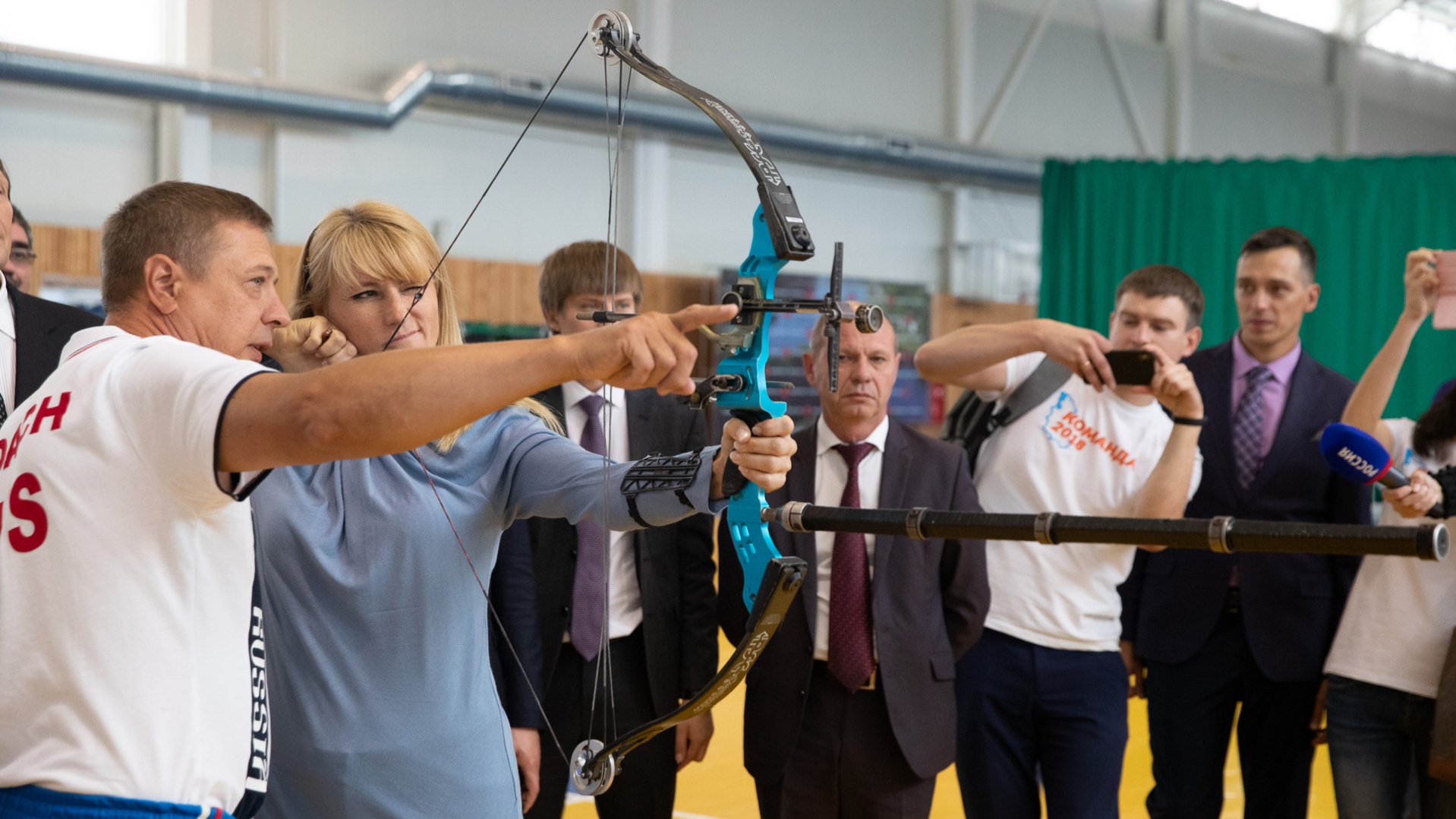 Гостью сразу же сопроводили в спортивный комплекс «Стрелец». С его открытием в 2014 году новый импульс развития получил не только лучный спорт. Сегодня в стенах учреждения проходят занятия по игровым видам спорта, оттачивают свое мастерство гимнастки, легкоатлеты, единоборцы, проводится сдача норм ГТО.