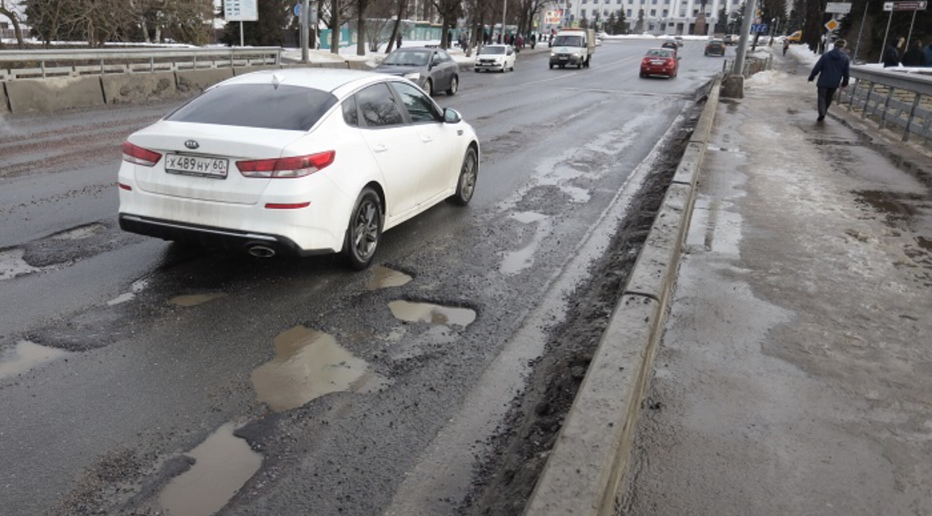 Сейчас Ольгинский мост представляет собой печальное зрелище - количество выбоин увеличивается с каждым днём и уже никакой ямочный ремонт не спасает. «Жалоб много. И до Нового года были жалобы и обращения. Было моё поручение в ежедневном режиме осматривать мост: ямочность появляется постоянно», - констатировал глава Пскова Борис Елкин.